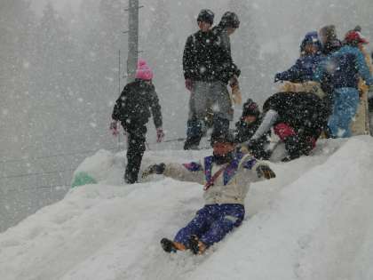 今日、雪国体験に参加した方から写真データをいただきました。等々力小学校の児童がお世話になりましたので、報告をかねて紹介させていただきます。当日は、吹雪く時間帯もあり、雪国をしっかり体験できました。大きな「かまくら」や「雪の滑り台」など、地元の方のおかげでとても楽しく過ごすことができました。行先は、新潟県魚沼です。おいしいお米のおにぎりやけんちん汁、お餅もごちそうになりました。