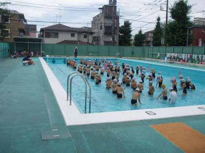 プールが始まりました。3年生は運が良く、もう3回も入ることが出来ました。プールがある日は、朝から「今日は入れますか。」のオンパレード。「入れますよ。」と言うと、歓声があがります。 今度の金曜日は検定を行う予定です。みんな、がんばってね。