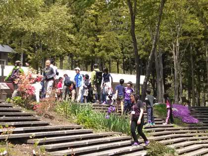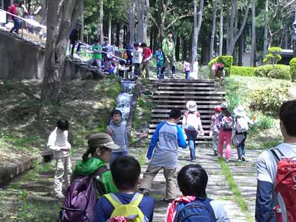 12時05分。21世紀の森ハイキングコースから全員無事ふじやまビレッジに帰還。今から昼食です。かなり疲れている様子。このあとゆっくりして肝だめしにそなえます。