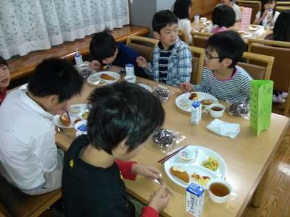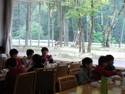 7時10分。三日目朝食。村めぐりをするので、たくさん食べるように指導がありました。