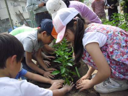 5時間目に、ししとうの苗植えをしました。農協の方々が耕してくださった花壇に、45鉢のししとうの苗を植えました。これからみんなでお世話をして、観察していきます。大きく育つのが楽しみです。