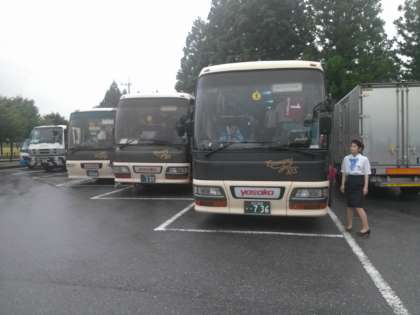 林間学園三日目。13時8分。だいや体験館見学し、予定より10分程早めに出発。天候は曇り。次は羽生パーキングから。