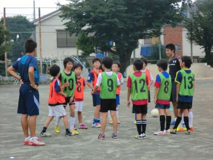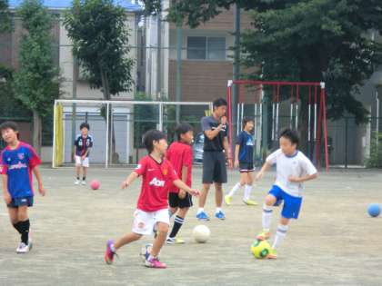 最終日の「わくわくスクール」には、東深沢中学校の先生方がたくさん講師として参加してくださいました。昨日は、英語科の先生が「英語であそぼう!」という講座を開き、子供たちに英語の楽しさを教えてくださいました。今日は「サッカー教室」が行われました。東深沢中学校のサッカー部の先生方を講師にお迎えし、子供たちは等々力小学校の校庭で、思い切りサッカーを楽しみました。