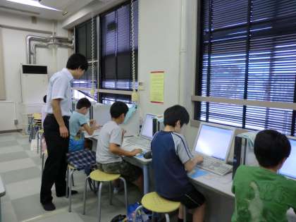 「できる! わかった! 楽しい! パソコン」講座の様子です。この講座の講師も東深沢中学校の先生です。楽しい教材を用いてエクセルの使い方を教えてくださいました。裏技もたくさん学びました。子供たちは、どの子も真剣に、そして夢中になってエクセルに挑戦していました。子供たちの吸収の速さに驚かされました。