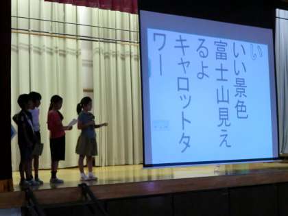 美しい日本語を大切に、毎日の生活を送っていきたいものです。10月7日は、日本語の時間に学んだ漢詩や詩、狂言などの発表を学年ごとに行いました。美しい響きを味わいながら、みんな一生懸命に発表していました。