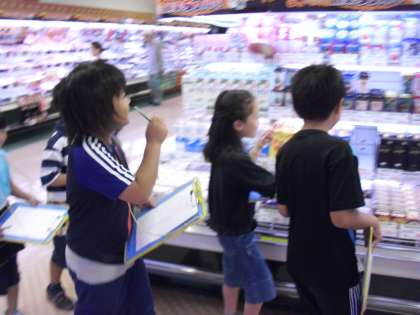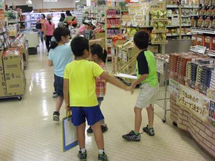 先日、スーパーサミット深沢坂上店に見学に行きました。10月17日(木)の買い物体験に向けて、班の友達と協力しながらどんな物を売っているか調べに行きました。天井に売っている物の看板があり、お店の工夫が見られました。17日の買い物体験日、子どもたちの活躍が楽しみです。