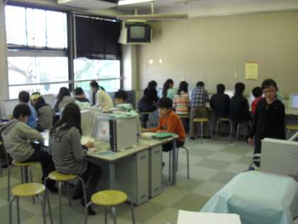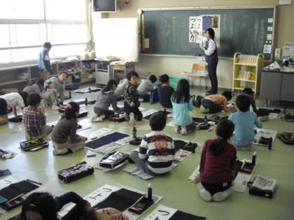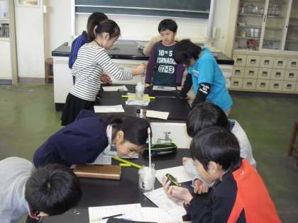 理科室で「実験」、教室で「書き初め」(毛筆)、パソコン室で、「日本語」の季語調べに取り組んでいました。