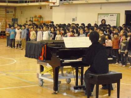 これまでに低学年音楽朝会、高学年音楽朝会で歌ってきた「tomorrow」を全校児童で歌いました。声が響きあって、すてきな音楽朝会となりました。