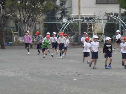 1年生が1月中旬に予定されている学年マラソン大会に向けて練習していました。少しずつ走ることに意識が高まってきています。