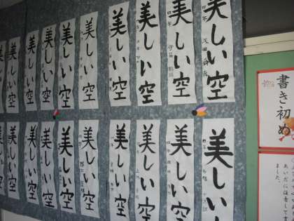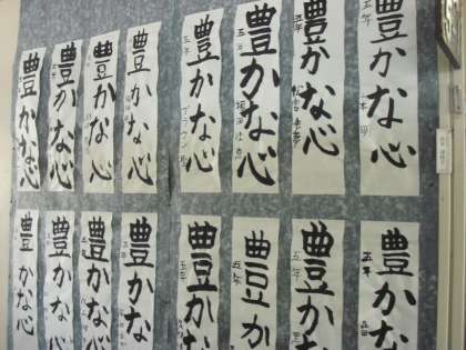 高学年は毛筆に取り組みました。廊下に掲示されている様子です。