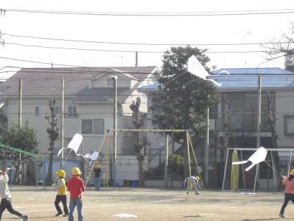 晴れた青空に1年生のたこがきれいに舞い上がりました。
