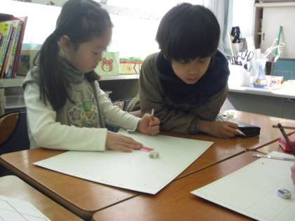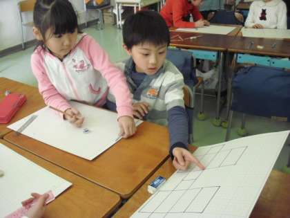 「はこってどうやってできているのだろう?」方眼用紙で一人一個、はこを作り、そこから、はこの仕組みや特徴を探っていきます。真剣に箱作りに取り組む子どもたちの目がとても素敵でした。