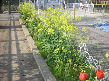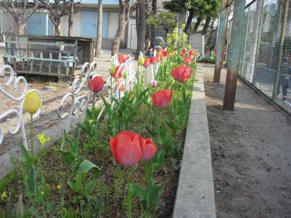 「心に笑顔 学校に花」は本校のキャッチフレーズです。春になってきれいに花が咲き誇っています。花の名前を覚えてくれたらと思っています。