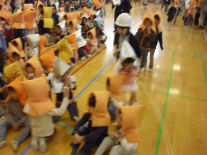 1年生もしっかりがんばることができました。「ハンカチは手をふくだけでなく、避難する時にも使う大切なものです。」という校長先生からのお話がありました。