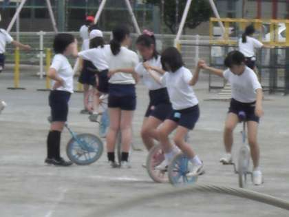 5年生と6年生が「なわとび」「1輪車」に挑戦していました。運動会に向けての練習の様子です。まだ、思うようにはいかないようです。アドバイスしながら取り組んでいました。