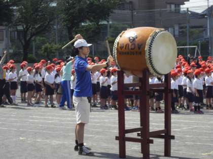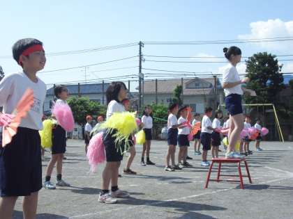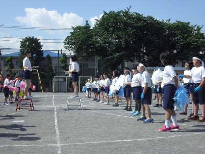 全校体育朝会では、応援の練習も行いました。大きな声で応援できました。