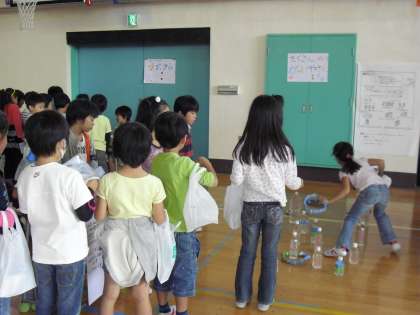3組は魚つり、ゴーカート、紙ひこうき、しゃてき。