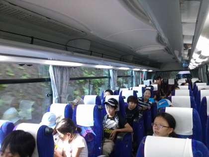 林間学校2日目。8:29いろは坂。天気は明るい曇り空。全員ほぼ元気です。