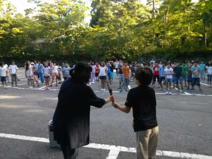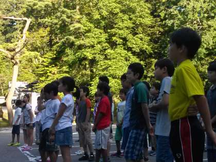 林間学校3日目。6:30ラジオ体操で目覚めました。その後、荷物整理。今、7:05朝食が始まりました