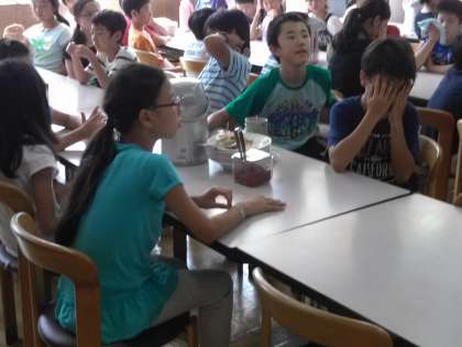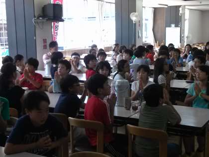 林間学校3日目。12:12林間学校最後の昼食(カレーライス)を東照宮近くの食堂でいただき、帰路にむけて出発です。杉並木は暑さと子供たちの様子から車窓見学とします。写真は食堂でカレーを食べた後の様子となってしまいました。しっかり食べた子と残しぎみの子がいました。
