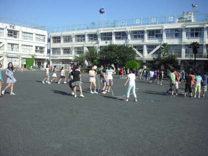 2学期二日目、あいさつキャンペーンが始まりました。校庭では、大縄に取り組む高学年の姿もありました。校庭改修が終わり、まだ土が落ちついていないため、少し柔らかめですが、楽しく遊んで体力づくりに励んでくれたらと思います。