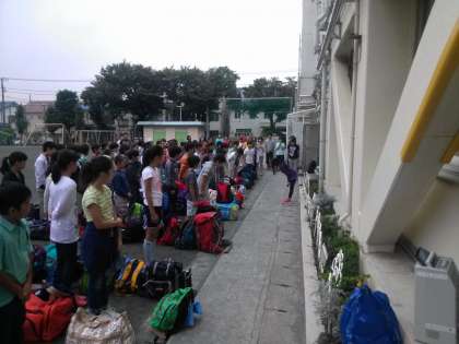 移動教室1日目。7:30出発式。