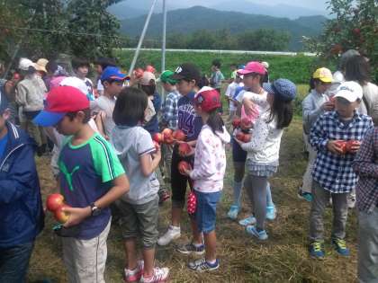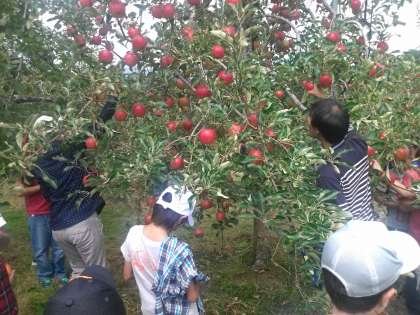 移動教室1日目。12:30関リンゴ園で無事収穫。