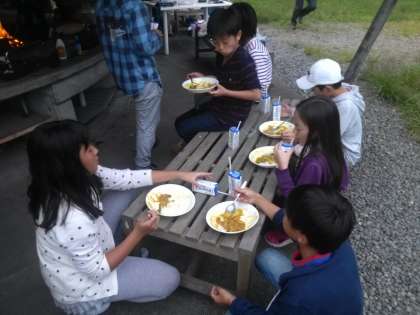 移動教室1日目。18:21飯盒炊飯無事終わる。