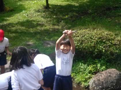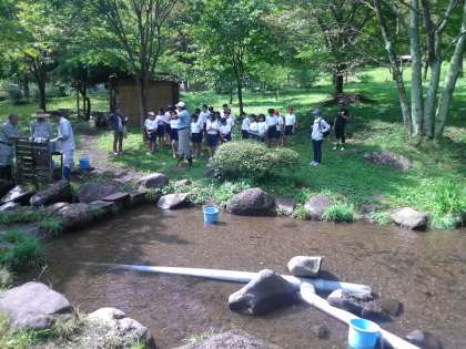 移動教室2日目。13:40古民家へいった後、マスつかみです。がんばります。