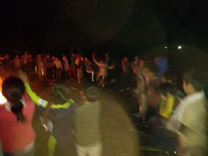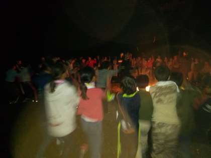 移動教室2日目。19:57キャンブファイア。ダンス始まりました。