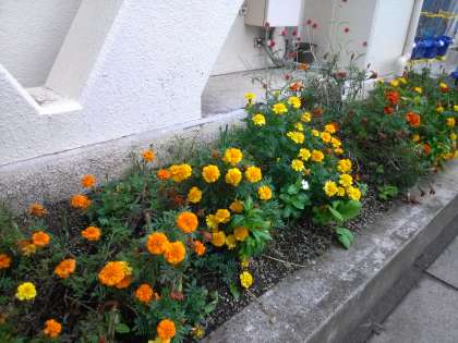 この時期、マリーゴールドやサルビアなどが咲いています。今年は学校運営委員の方から麦の種をいただき、蒔いてみました。楽しみです。