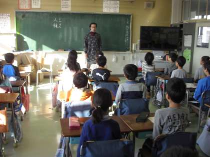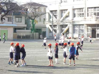 校庭でマラソンに取り組む一年生の姿がありました。寒さの中でしたが、心地よい日ざしの中、頑張っていました。もう一枚の写真は二年生。人権というちょっと難しいことを習いました。