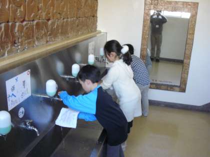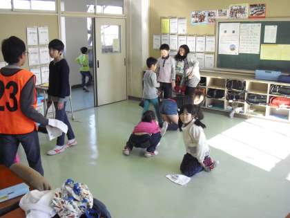 いろいろな学年が混じり合って掃除を頑張ります。本校自慢の縦割り活動の一つです。