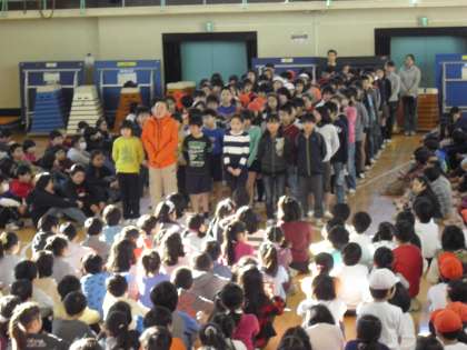 全校朝会で「節分」の話を聞いた後、「ことばのひろば」がありました。5年生が「教室はまちがえるところだ…」と日頃の練習の成果を披露しました。言語環境整備の一環として取り組んでいます。他の学年から大きな拍手をもらいました。なわとび週間が始まりました。下の二枚の写真は、中休みに校庭で元気になわとびに取り組んでいる低学年の様子です。