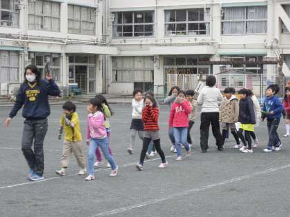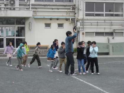 寒い曇り空でしたが、がんばりました。今まで避難訓練は何回もやってきました。「学んだことを本当の地震がきたら生かしましょう。」という話を聞きました。