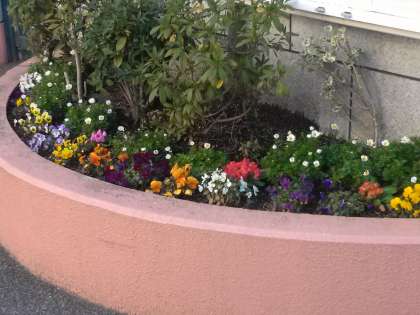 あいさつキャンペーンがありました。あいさつは大切です。これからもがんばりましょう。校門の花もきれいに咲いていました。