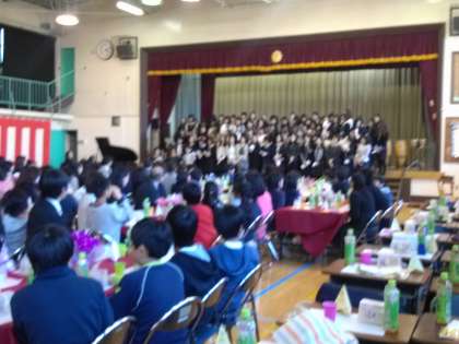 体育館で六年生が感謝の会を開いてくれました。すてきな歌声が響き渡りました。