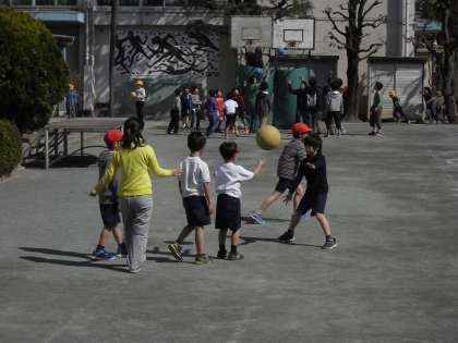 なわとび、ボール遊び、鬼ごっこといろいろな遊びを楽しんでいました。