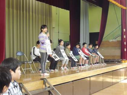 10委員会の委員長が自己紹介の後、それぞれの委員会からのお願いを全校児童に向けて発表しました。委員会がスタートして学校の活動が豊かなものになっていきます。がんばってくれたらと思います。