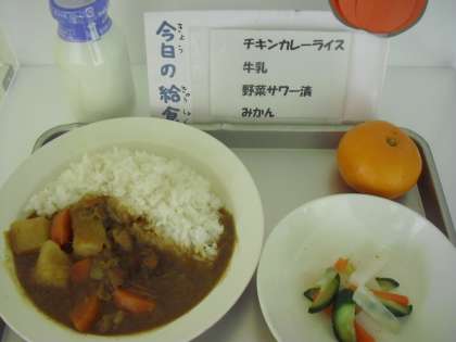 チキンカレーライス 牛乳 野菜のサワー漬 みかん