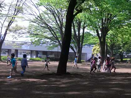 低学年の遠足で駒沢公園に来ています。写真は自由広場の様子です。