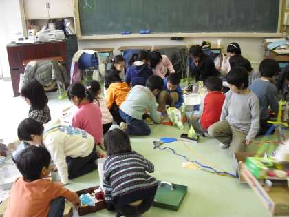 子どもたちは自分の住みたい家を思い思いに作りました。