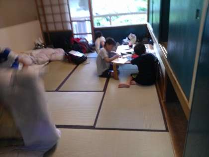 2日目。ハイキングから帰ってきた後、くつろいでいる宿舎の中の様子。