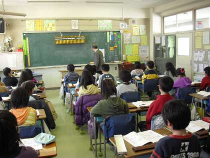 3年生は今そろばんの勉強をしています。講師は、日本珠算連盟、むさし府中珠算協会の田口成二先生です。ここ数年、等々力小の3年生は、田口先生の教えを受けているのです。                                       そろばん塾に通っている子もいますが、ほとんどの子供たちがそろばんは初めて。もう四苦八苦です。今日は『5をつくる計算・5からひく計算』を教わりました。「1の友達は4、2の友達は3、3の友達は2・・・」頭では分かっているのですが、いざそろばんを前にすると、「ああ!難しい!!」