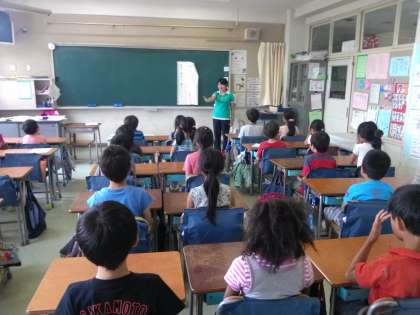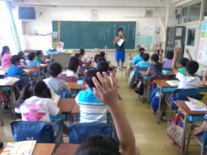 2年生と3年生の授業風景です。大きな声で暗唱したり、学級の活動のふりかえりをしていました。たくさんの子ががんばって発言していました。