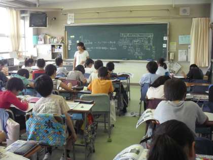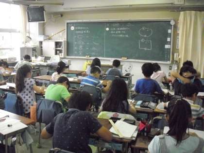 1組は理科で回路の勉強に、2組は国語で原爆の話に、3組は社会で浄水場のしくみについて学習していました。