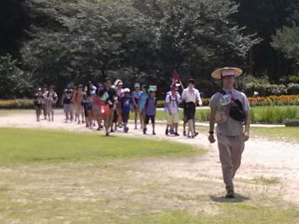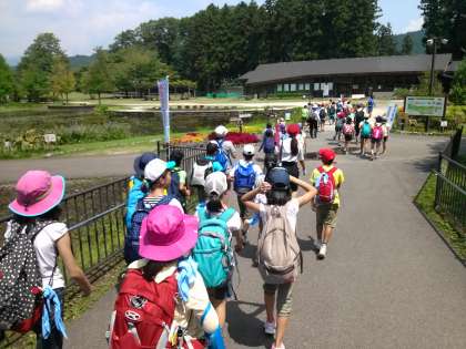 林間学校は日光大谷川公園の昼食の時間となっています。日かげは気持ちいい状態です。