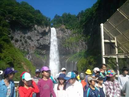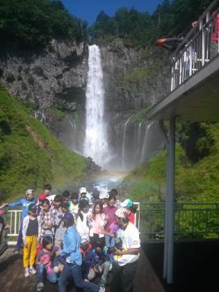 二日目。華厳の滝に来ています。水しぶきがかかります。