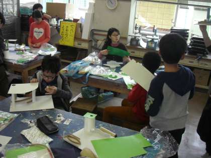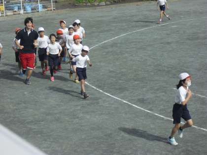 五年生が図工で工作を頑張っていました。六年生は、家庭科でミシンに挑戦です。校庭では三年生が体育の時間、マラソンに取り組んでいました。