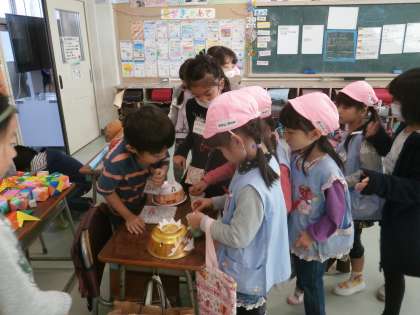 幼稚園のみんなを案内するのも、2年生の大事なお役目です。すぐそばで幼稚園のみんなの喜ぶ顔が見られて、2年生も嬉しそうでした。今日は1日、本当によく頑張りました。